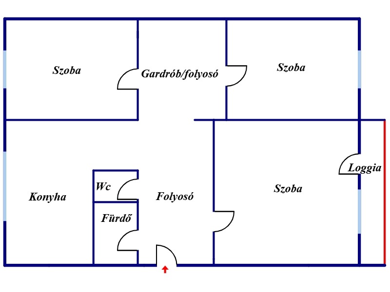 -A két kisebb szoba között kialakítható gardrób vagy beépített szekrény
