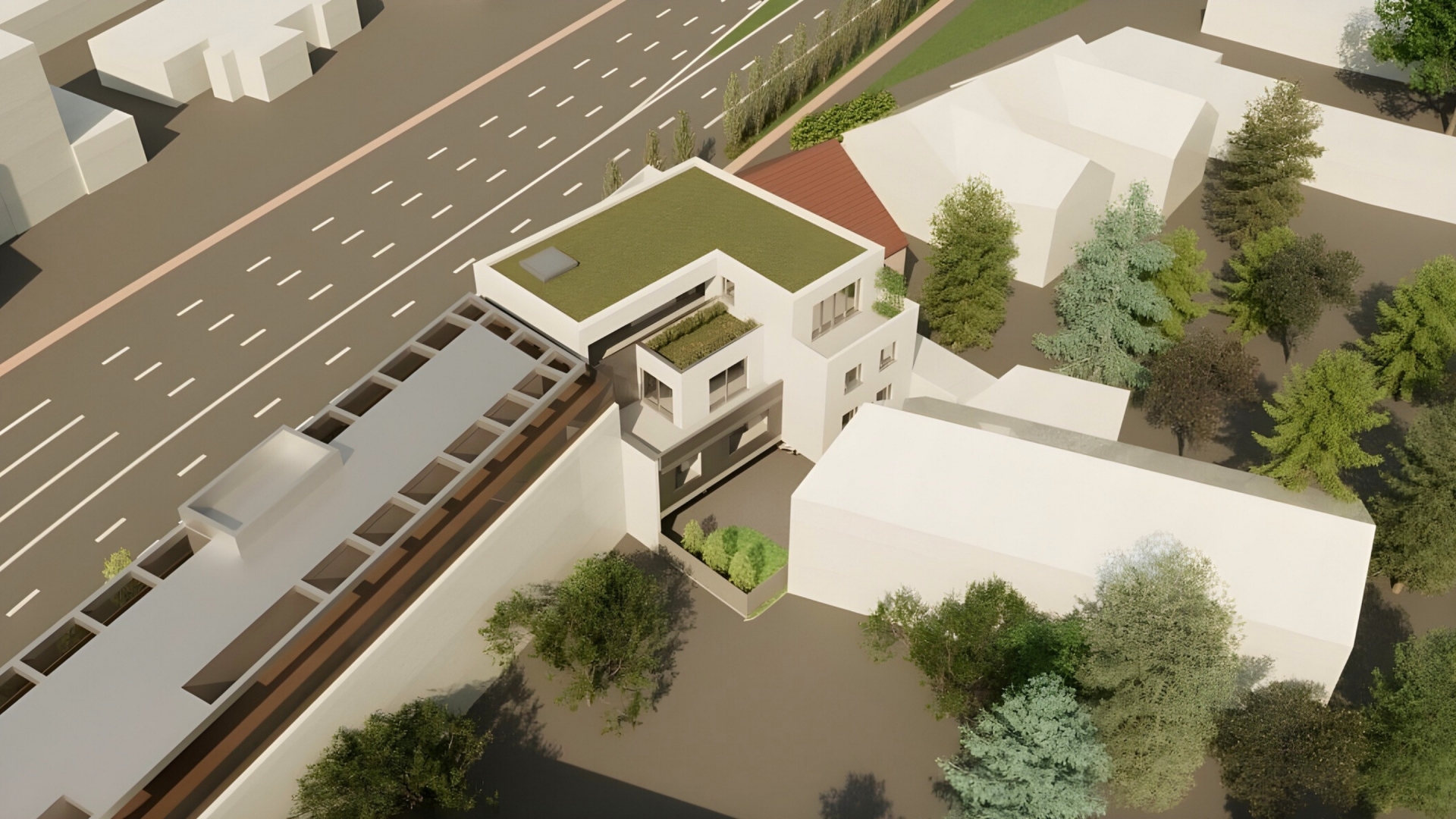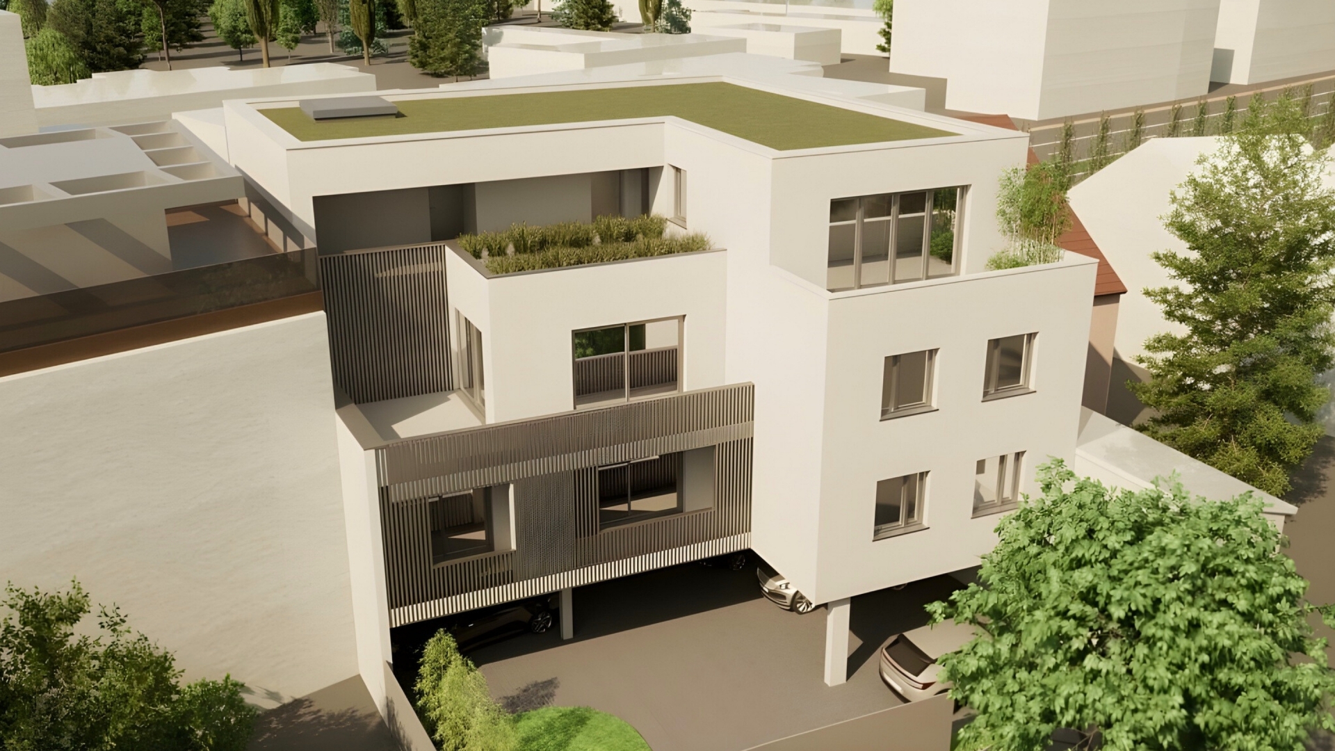 - Extenzív zöldtető az épület tetején – környezettudatos kialakítás, természetközeli hangulat